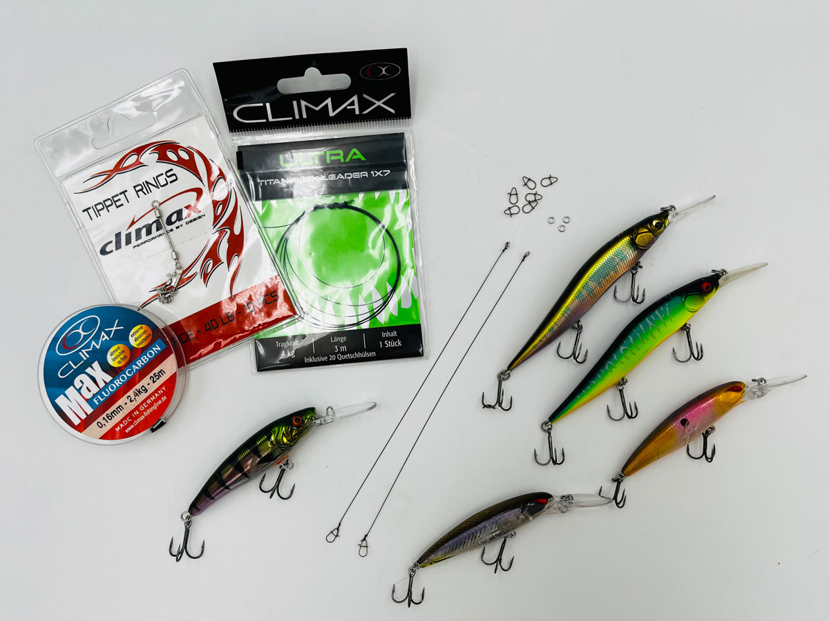 Man benötigt hierbei nicht viele, der oftmals teuren Köder. Einen Flach plus Tiefläufer im natürlichen Design und das Gleiche in auffälligeren Dekoren reichen in der Regel aus, um die gängigen Situationen abzudecken. Speziell bei den auffälligen Dekoren, sollte man auf einen orangen Bauch achten, diesen mögen Barsche im Winter besonders gerne.