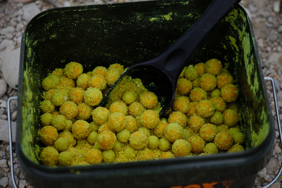 Ich entschied mich, passend zur Jahreszeit, nur sehr wenig Futter einzusetzen, dafür aber mit reichlich löslichen Stoffen und flüssigen Attraktoren zu arbeiten. Auch farblich wollte ich sowohl Futter als auch Köder deutlich vom Untergrund abheben und jede der Ruten als „kleine Falle“ im See verteilen. Da die Struktur des Sees viele markante Punkte besitzt, wollte ich unterschiedliche Bereiche ausprobieren, solange bis ich schließlich die Standorte der Fische besser eingrenzen konnte.